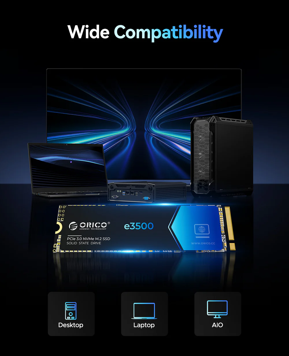 El ORICO E3500 SSD de 1TB es una excelente opción para quienes buscan actualizar su equipo con un almacenamiento rápido, confiable y con gran capacidad. Equipado con tecnología NVMe PCIe Gen3 x4, este disco ofrece altas velocidades de lectura y escritura, ideales para mejorar el rendimiento de arranque, la carga de aplicaciones, videojuegos, edición de archivos pesados y transferencia de datos.