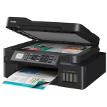 La Brother MFC-T920DW es una impresora multifuncional de alto rendimiento, ideal para oficinas y negocios que requieren impresión económica, rápida y profesional. Equipada con un eficiente sistema de tinta continua recargable, ofrece un bajo costo por página y gran capacidad de impresión para altos volúmenes.